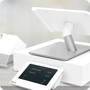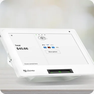 Get a complete point of sale on one compact device. With Clover® Flex, you can accept any transaction, including EMV, PIN debit, and Apple Pay. Use the built-in barcode scanner to manage inventory and adjust tips easily on the 5" glass touchscreen, all powered by a battery that lasts up to 8 hours.